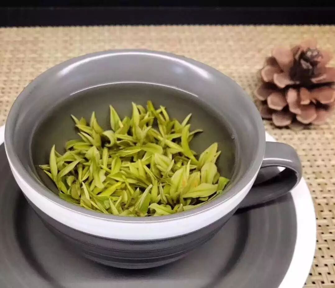 安吉白茶对原料有特殊要求,只有安吉当地白叶一号,在每年春天萌芽白化期内采摘,按照绿茶加工工艺制作,加工成干茶称为安吉白茶。成品茶色、香、味、形俱佳,外形条索紧细显芽,芽壮实匀整,鲜活泛金边,形似凤羽;叶脉两侧的叶色嫩绿如玉霜,光亮油润,其余部分呈黄绿色,与叶脉处有明显差别;汤色嫩绿明亮,香气嫩香持久,滋味鲜醇甘爽;叶底一芽一叶,叶白脉翠,芽长于叶,成朵、匀整。